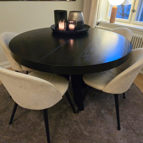 Rundt spisebord som passer bra sammen med Fogia Bollo spisestol / Spisolini. Ø138, H73