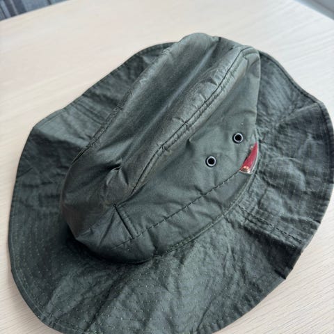 Lær -og semskede lapper. To store frontlommer, to enorme baklommer, en glidelåslomme.