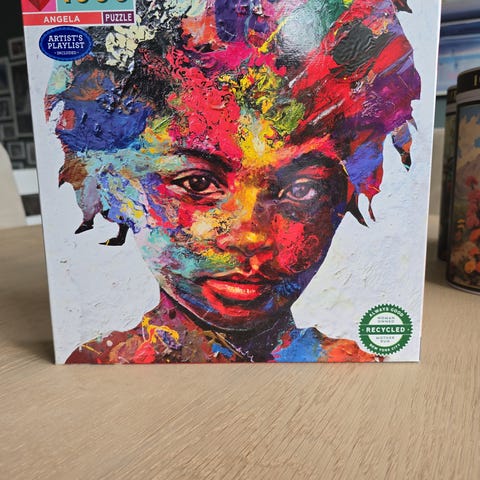 Nattero Quiet Nights puslespill med 1000 biter. Design av Lisa Aisato . Bildet viser fasade av bygninger i mørke toner med en opplyst vindusdetalj.
