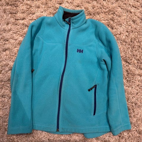 Fin fleecejakke i str 152 i en lys dus blåfarge. Kan fint brukes av både gutter og jenter. Varm og god i god kvalitet. Polartec. Nyvasket.