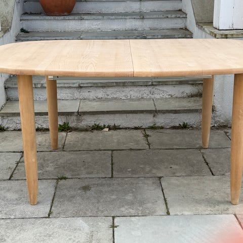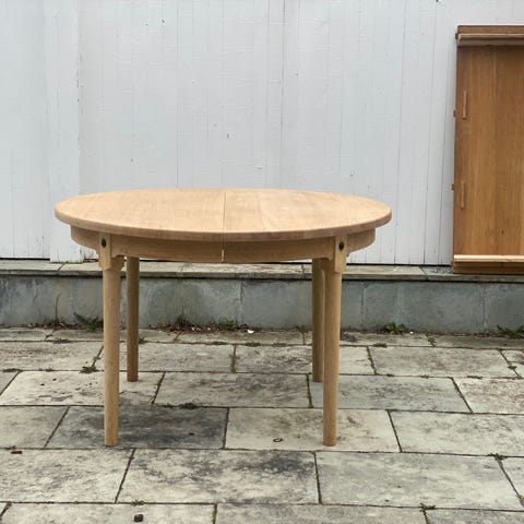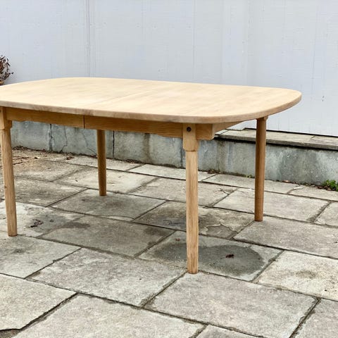 Meget fint og praktisk spisebord i massiv lys bøk.