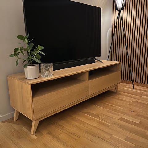 Beliani TV benk, må monteres på nytt, alt ligger i esken sin.
