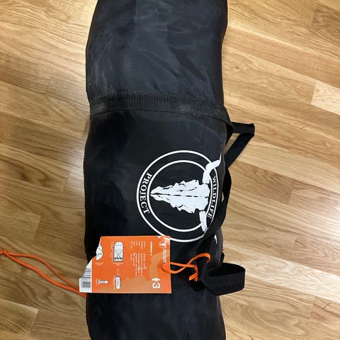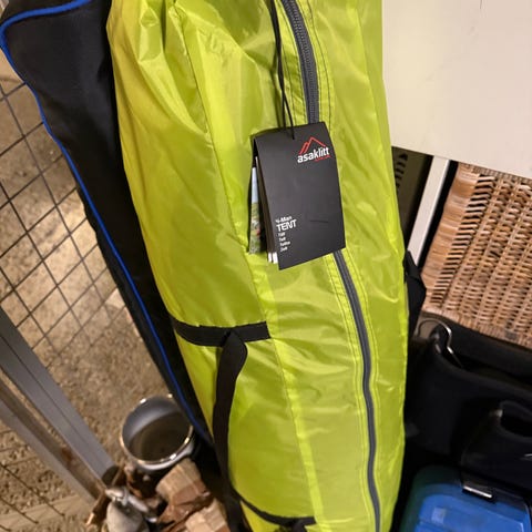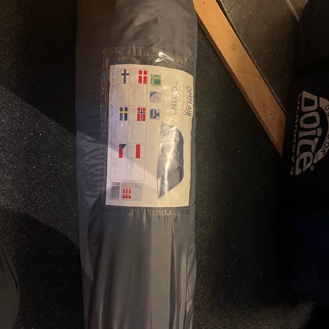 Svart og sølvfarget nylonstoff i ukjent 8 til 9 meter lang.Materialet er vannavstøtende og egnet for utendørs bruk eller beskyttelse. Kjøpe det til beskyttelse for bobilen. Aldri brukt. Solgte bobilen.Kan brukes til ulike formål som presenning, dekke eller lignende.