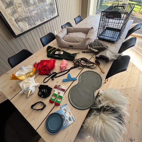 Buret har stått i stua men har ikke blitt brukt av hunden vår. Puta følger med. Str M.