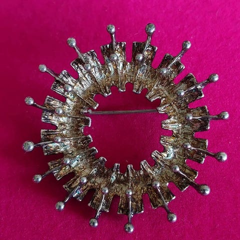 Brosje i sølv med nasjonalt ornamentikkmotiv. Kr. 400