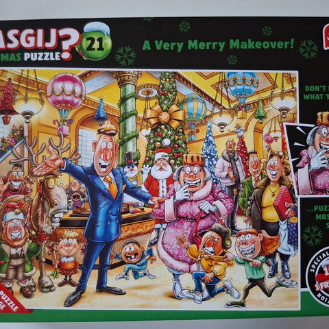 Wasgij? Spirits of Christmas puslespill med 2 x 1000 biter. Puslespillet har et juletema med detaljerte motiver og fargerikt design. Ett puslespill som viser bildet på esken og ett overraskelses puslespill som viser hva de på esken ser på. Puslet en gang. Alle brikker tilstede.
