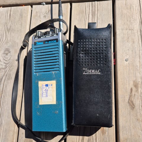 Fungerer og i orden. Antennen har en skade som er reparert, påvirker ikke bruken. Følger med ekstern antenne, ekstra stort batteri, lader, lader for 12V uttak, deksel på selve telefonen og oppbevaringsbag.