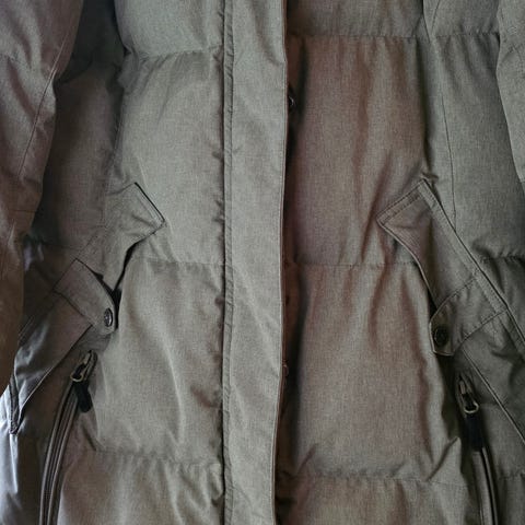 Fin og ren ingen skader. Ser som ny. Uten hette Ullstoff inni krage og rundt handledd. Litt insvinget. 25 kr I FRAKT på Posten nå