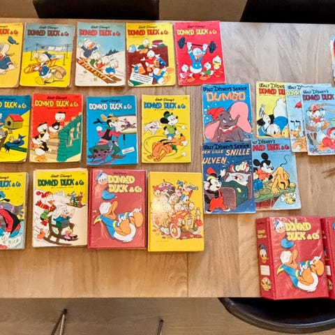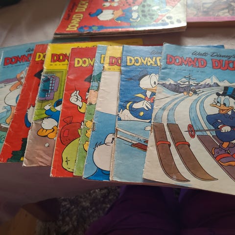 Selger en liten samling med 4 vintage Donald Duck & Co-blader fra tidlig 1970-tallet. Inkluderer to eksemplarer av den lyseblå utgaven, pluss to andre klassiske forsider.