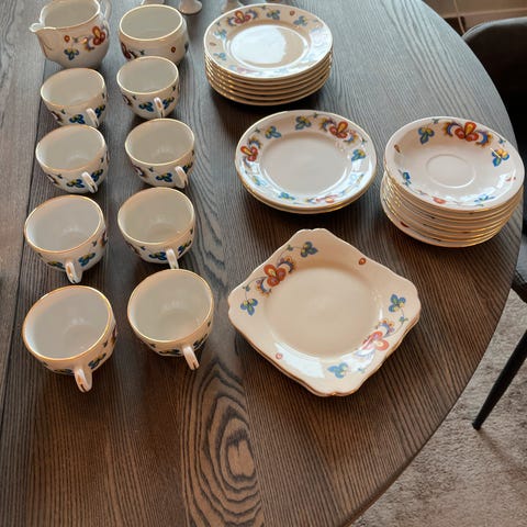 6 stk flotte tallerkner fra Porsgrund Porselen modell Vega med kullkant. Motivet kales "Brun rose". (7. er gave).I veldig gog stand. Jeg sender ikke. Betales kun kontant. Oslo