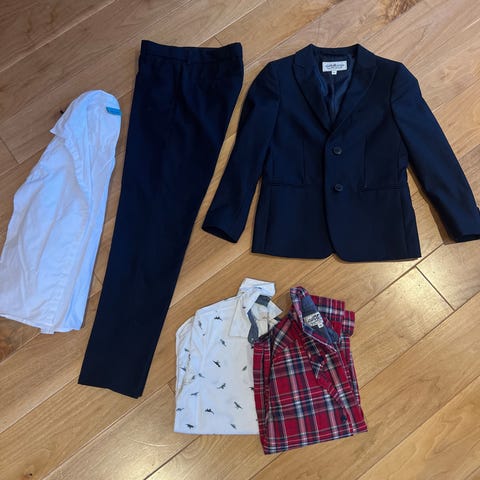 Dressjakke, skjorte, og 2 bukser.