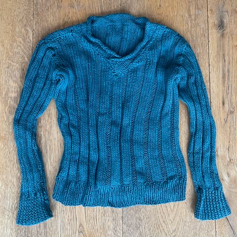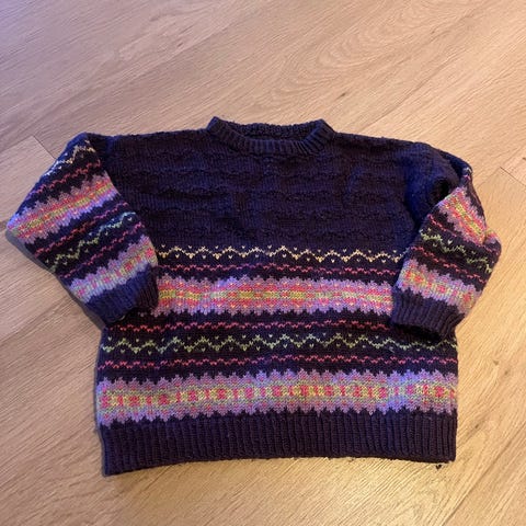 Fin og varm genser i bomull. Perfekt for barn som reagerer på ull. Størrelse 4-6 år. Strikket med dobbelt garn.