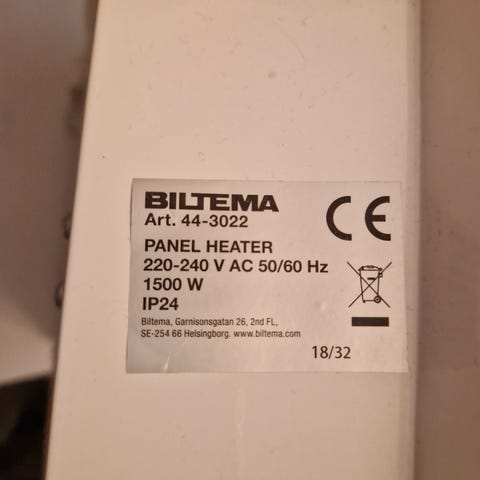 Panelovn, Electrolux 800 W med termostat.