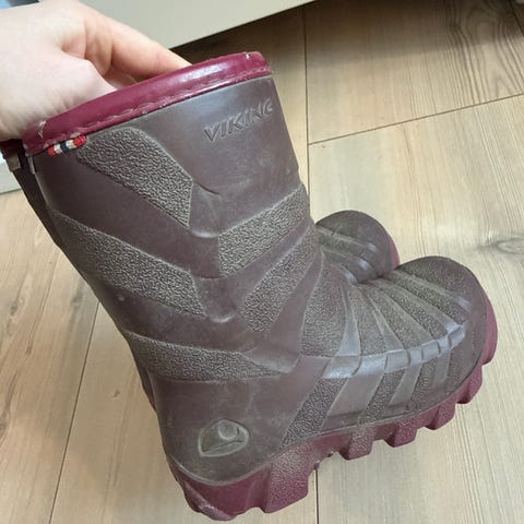 Selger et par praktiske Viking Ultra vinterstøvler til barn i størrelse 27. Dette er en moderne vinterklassiker som holder føttene varme helt ned til –20 grader. Støvlene er laget av lett og fleksibel Elastopan® med mange luftbobler som gir super isolasjon og lav vekt.