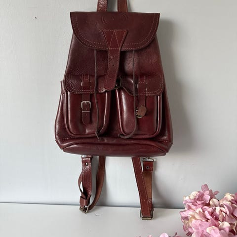 Vintage ryggsekk, lær, litte brukt.