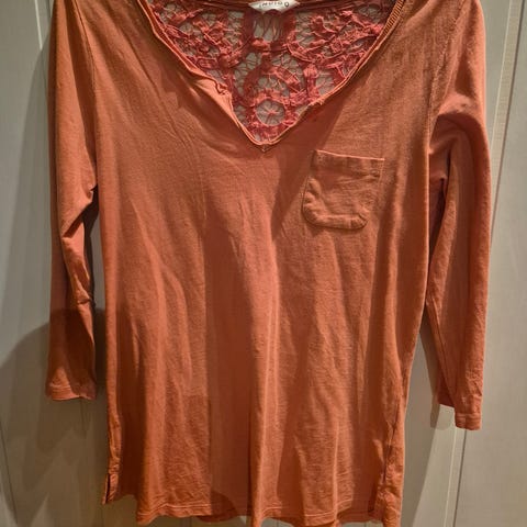 Stilig gjennomsiktig bluse med delvis vertikalt åpen rygg fra " mbyM", i lilla farge,str. S, veldig lite brukt.