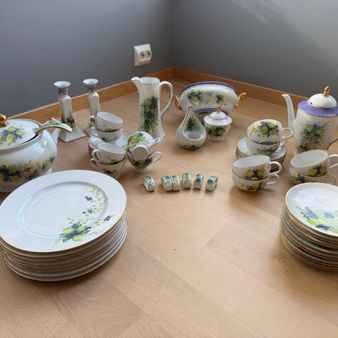 Fint kaffeservise (11 stk) med fløtemugg og sukkerskål