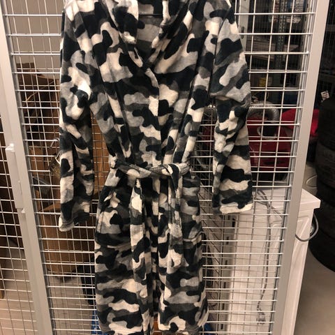 Pent brukte badekåper.