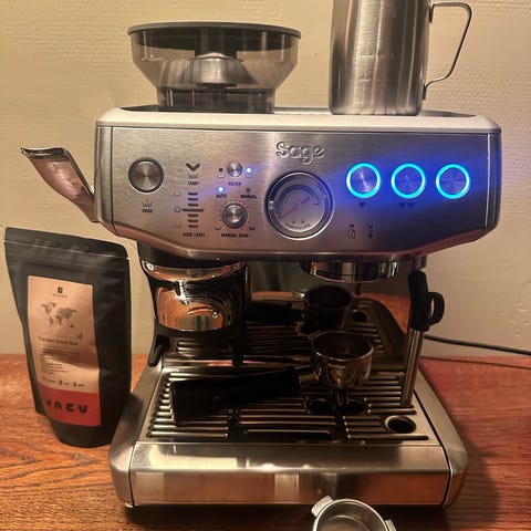Vannkokern er brukt i halvannet år og funker fortsatt som ny. Denne selges da jeg har kjøpt en ny vannkoker laget for pourover kaffe.