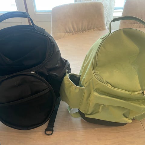 Selger lite brukt discgolf sekk med 10 forskjellige frisbee .