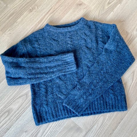 Hjemmestrikket Ingrid sweather størrelse 10-12 år.