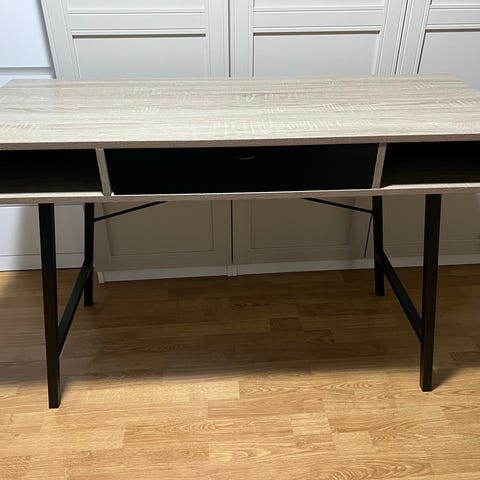 Tøft IKEA skrivebord i sorte blanke overflater. 2 skuffer