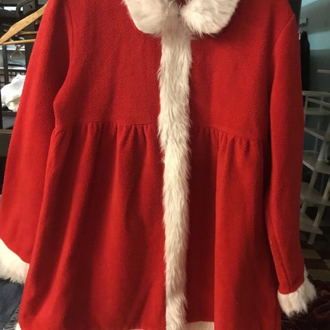 Søt nissekjole med forkle. i str 134/140. Pent brukt. Nisseskaut følger med.