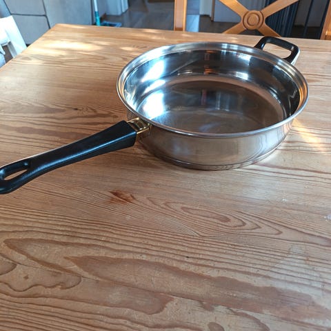 Stekepanne med lokk. God og solid panne mye bruk igjen ! Diameter 29 cm høyde 8 cm