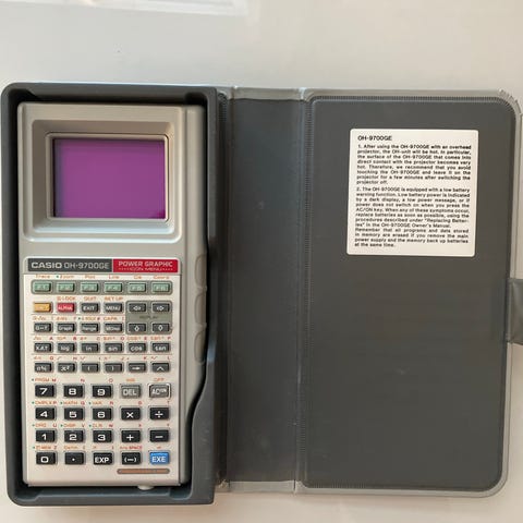 The Casio CFX-9800G is a scientific/graphic calculator with 10 digits precision and formula input logic. It has 58 keys, and LCD colour display. Den har fått en liten skade på skallen (se bilde), men det er fult funksjonell.
