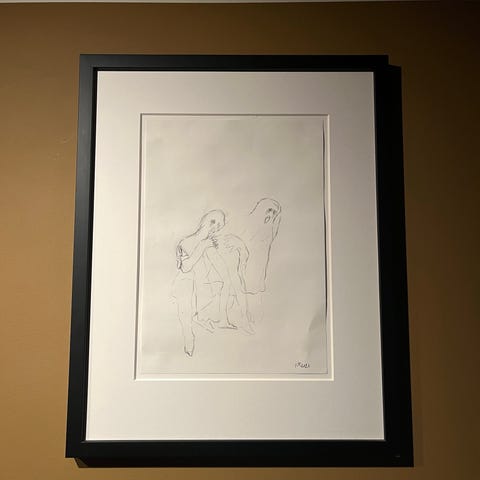 Trykket ved Atelje Larsen i Helsingborg og flott innrammet med eikeramme/ valnøtt-lameller og kunstglass ved Trafo Kunstproduksjon.