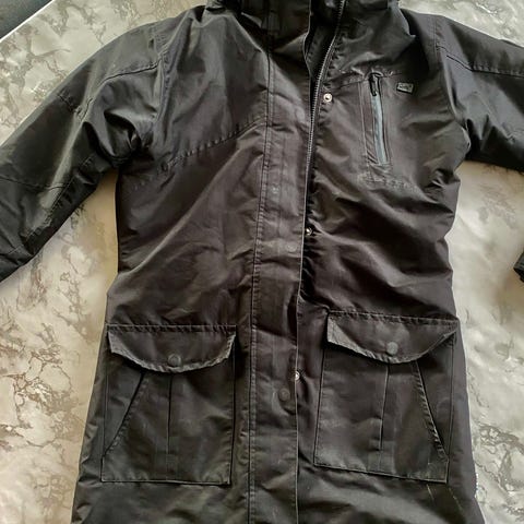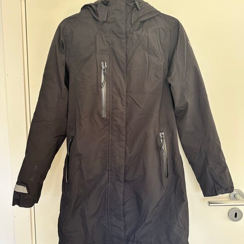 Sort regnjakke med lilla for i str S fra Missing Link.