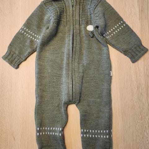 Lillelam Ull Sparkedress i størrelse 68, grønn farge, laget av ull. Passer for både gutter og jenter. Kan brettes over fot og hender som gjør dette til den perfekte vogn dressen. Vært en favoritt. En liten løs tråd og nupper forekommer, ellers kan jeg ikke finne noen hull og masse bruk igjen