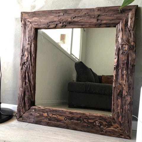 Selger et pent brukt speil med klassisk design. Den har rektangel form.