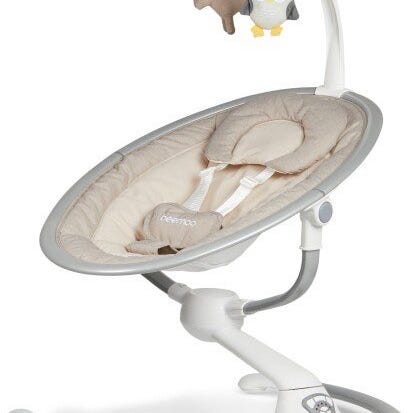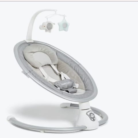 Beemoo Rocker, en fin vippestol med en smart gyngefunksjon. Stolen kan vippe i fem forskjellige hastigheter, med en timer-funksjon som kan stilles til 15, 30 eller 60 minutter. Setet kan dreies 360 grader, rygglenet kan justeres i to stillinger. Vippestolen har en avtakbar lekebøyle med to myke leker. Flytt lekebuen enkelt til forskjellige posisjoner ved å skyve den langs seterammen. Den har også 16 innebygde melodier som du kan spille for babyen din, samt fem låter med beroligende naturmusikk. Den har en bevegelsesdeteksjon-funksjon, som gjør at vippingen starter når babyen din våkner og begynner å bevege på seg.