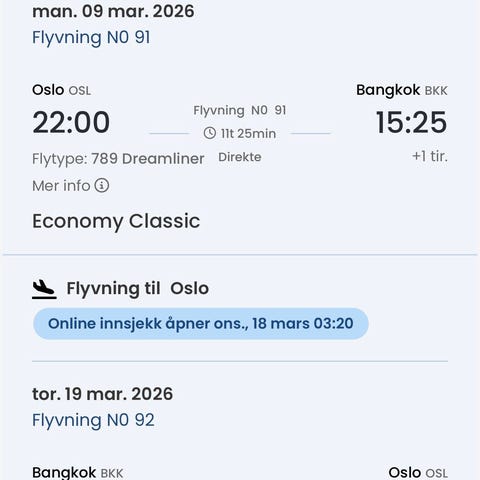 SAS flybillett fra Oslo til Alicante med avgang kl. 06:35 og ankomst kl. 10:30. Flyvningen varer totalt 3 timer og 55 minutter med flynummer SK4675. Billetten inkluderer bagasje.