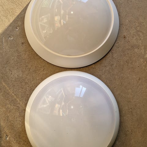 2 stk spotskinner hvit med tre spotter med pærer, lite brukt selges samlet