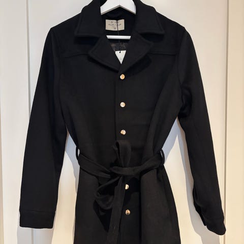 Jakken er laget av 50% resirkulert ull og 50% resirkulert polyester. Jakken har knappelukking foran. Den har et belte i livet for justering og lange ermer med mansjetter. Kåpen har en glatt fôr(polyester) på innsiden.