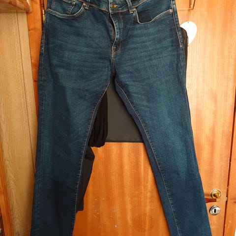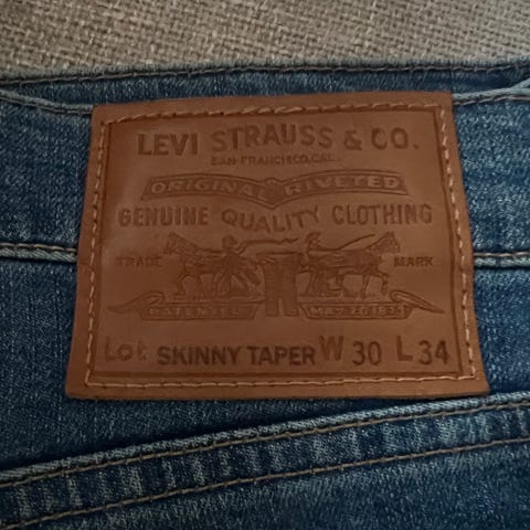 Levi's jeans i blå farge type 501 størrelse (34/34), Morris Jeans i beige farge størrelse (34/33), Lee jeans i blå farge størrelse (33/34).