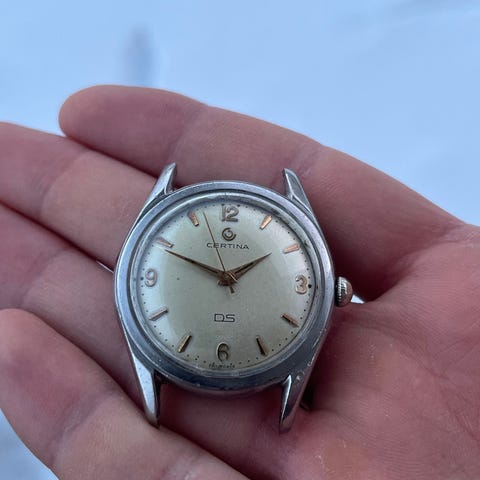 Meget fin Certina DS-2 fra tidlig -70 . Urverket går meget bra, renset og smurt. Denne har nytt glass og ny rem. I flott stand for alder. 38mm i diameter uten krone, så veldig fin størrelse.