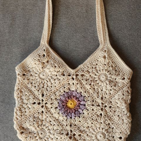 En skikkelig gladveske som passer perfekt til hverdags, sommerbruk, festival eller som gave til noen som elsker håndlaget tilbehør. Kommer fra røyk- og dyrefritt hjem.