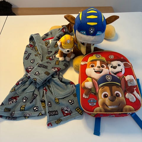 Fjernstyrt paw patrol bil, badekåpe og to paw patrol bamser. Perfekt julegave for de som elsker paw patrol! Selges samlet.