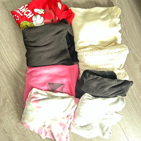Klærne er pent brukt. Noen av klærne har bruksmerker men de fleste fremstår pent brukt uten synlige merker . se på bildene.