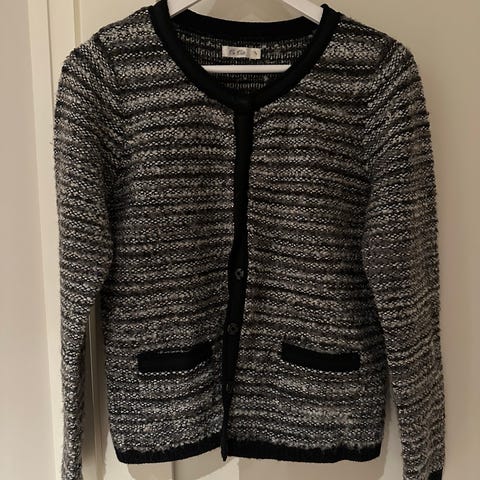 Fin cardigan med klassisk rombemønster/ruter. Str M