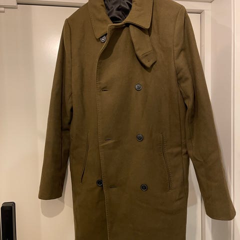 Morris kåpe for herre i størrelse 48, blå farge. Kåpen har en glatt, lys beige fôr og er laget av materialer som inkluderer ull og polyester. Passer til bruk som ytterplagg.