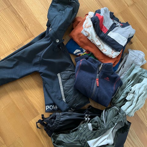 3 øverst str 110/116 (1 blå tynn overtrekksjakke og 2 grønne regnjakker)
