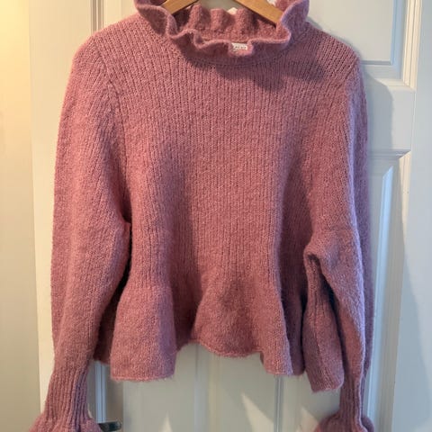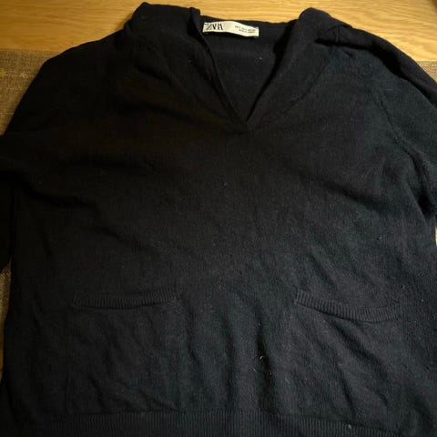 Zara Genser i ullblanding , størrelse S, farge vinrød/burgunder . Genseren har en enkel design med en dekorativ sløyfe foran.