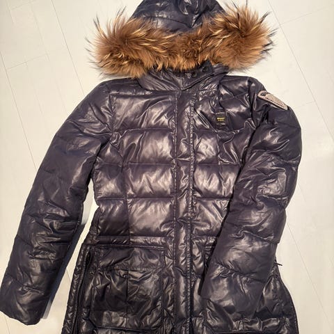 Super flott Dunjakke med hette og fuske pels - pels på armer og hette kan tas av