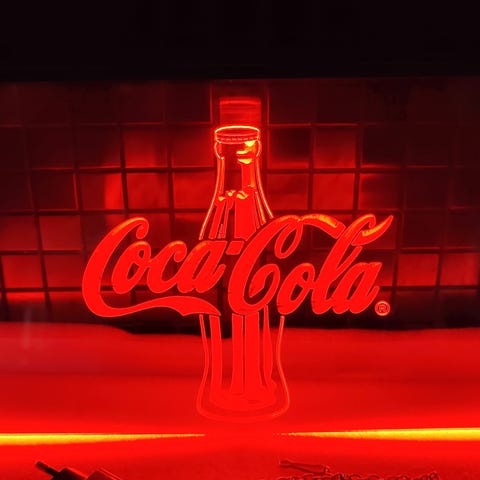 LED "neonaktig" lys skilt med inngravert motiv. Motivet har 3D effekt, da den er inngravert med 3D teknologi. Dette gjør også at motivet blir tydelig fra flere vinkler. Metallkjede for opphenging følger med til alle skilt.