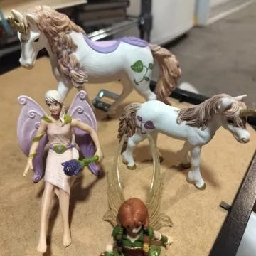 Schleich hinder bane med 3 hester 2 ryttere og mer
