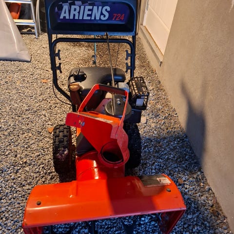 8 hk snøfreser med elstart 230 V AC, elektrisk oppvarmede håndtak og lykt. Starter lett og kaster snøen veldig bra. Byttet nylig tennplugg og motorolje. Ingen skader eller sprekk i vifte huset.